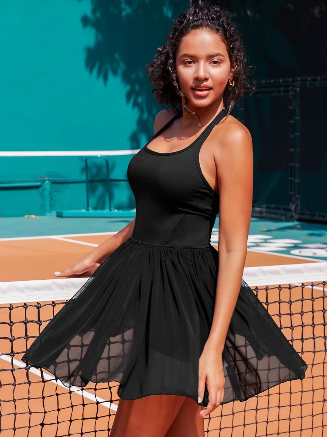 - U-Neck and Racerback: Womens sports dress features a U-neck and a racerback design, allowing for unrestricted movement and flexibility during various exercises