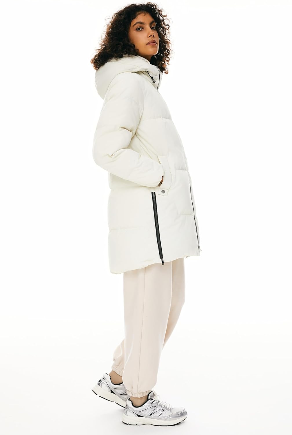 - Premium Material: The women’s mid-length down jacket is made of 75D thick polyester fabric that is water-resistant, windproof, and provides superior warmth, with RDS-certified 700+ fill down for complete cold-weather protection.